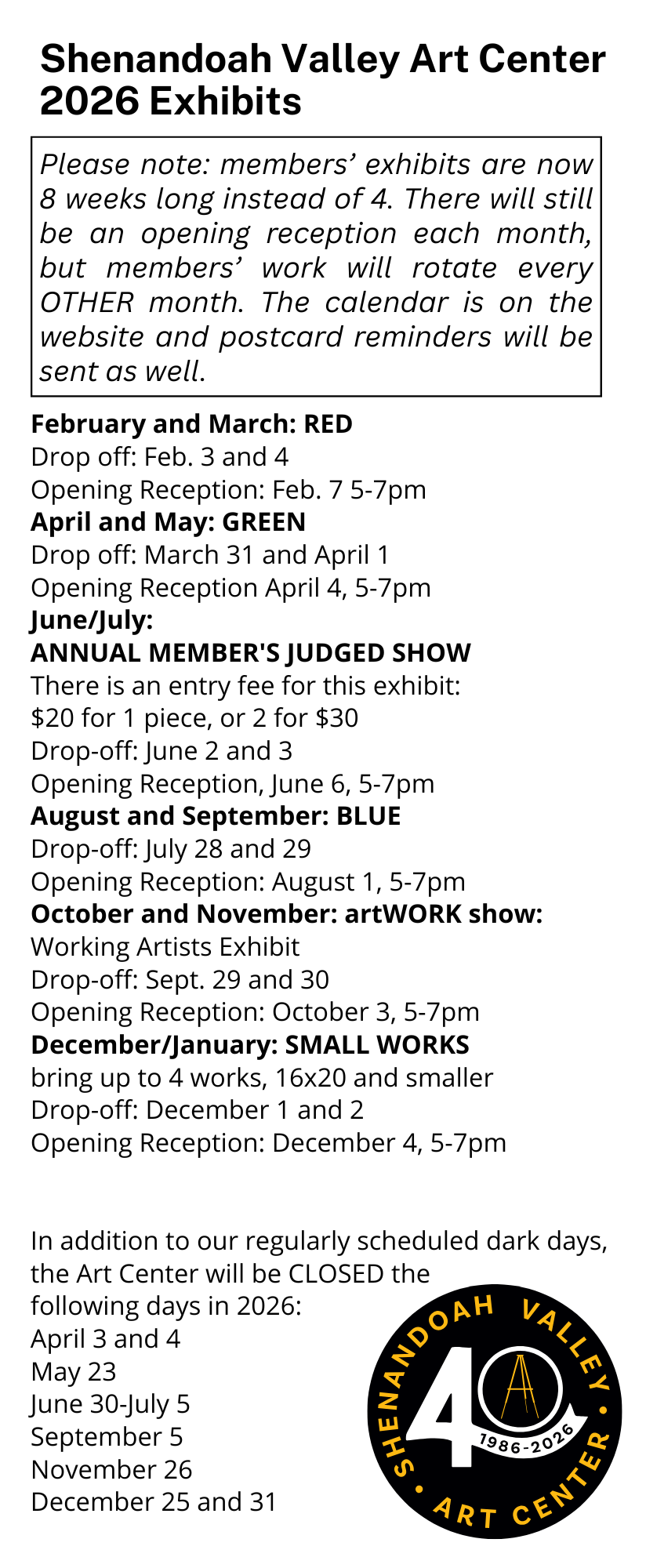 We’re so excited to see what you’ll bring! Thank you for helping make our exhibits a success—you’re what keeps our creative community so vibrant.